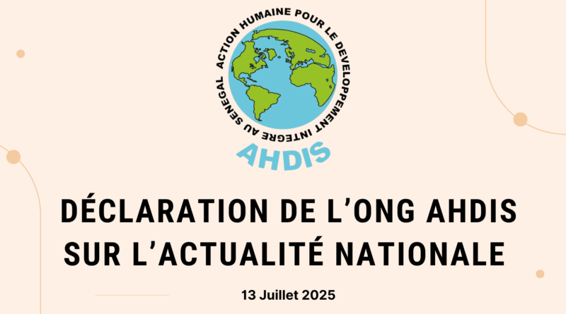 Lire la suite(Dakar, ce 10 février 2026) – L’ONG Action Humaine pour le Développement Intégré au Sénégal (AHDIS) a appris avec une